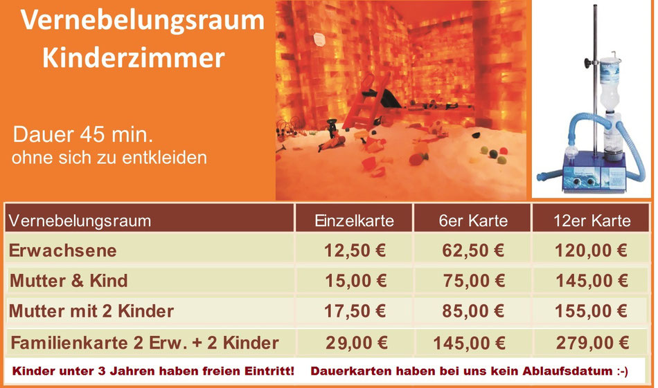Bei akuten Erkältungen empfehlen wir 2-3 mal pro Woche den Vernebelungsraum zu besuchen.